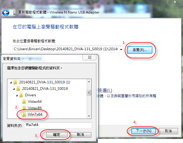 9.瀏覽à『選擇您驅動程式擺放位置』點確定後,下一步