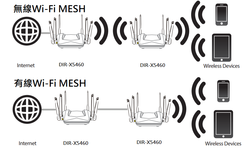 限制同型號才能設定WIFI MESH,例如DIR-X5460搭配DIR-X5460、DIR-X3260搭配DIR-X3260、DIR-X1860(B)搭配DIR-X1860(B)。