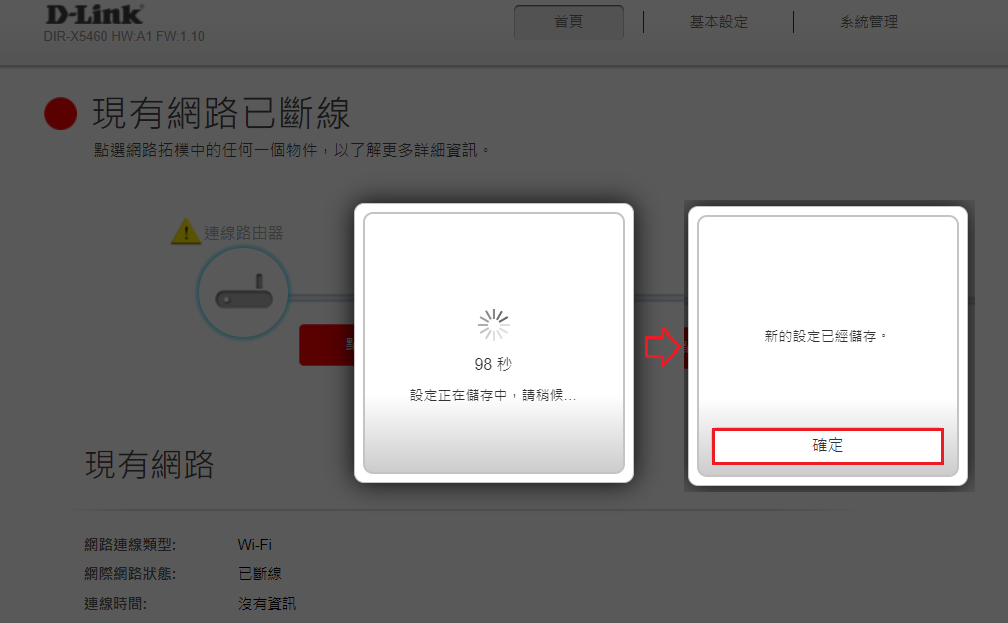 15.等候2~3分鐘後,第二台DIR-X5460的網際網路燈會亮白燈。