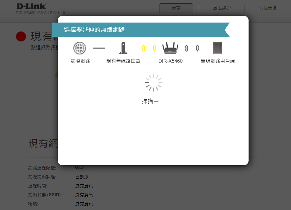 6.開始掃描第二台DIR-X5460週遭所有的無線訊號。