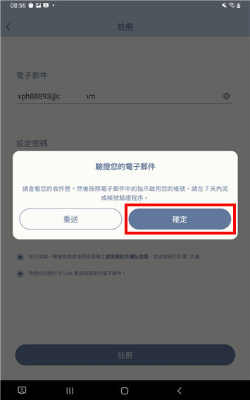 3. 驗證您的電子郵件點選「確定」。