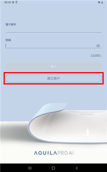 1. 開啟AQUILA PRO AI App,點選下方「建立帳戶」。