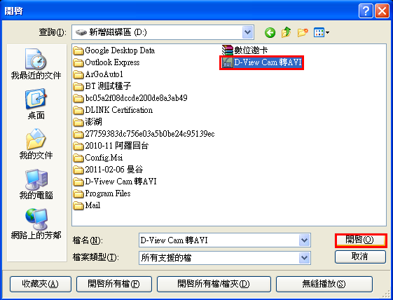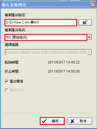 將使用D-ViewCam (DCS-100) 程式錄影的影像.dat檔轉檔成 AVI格式