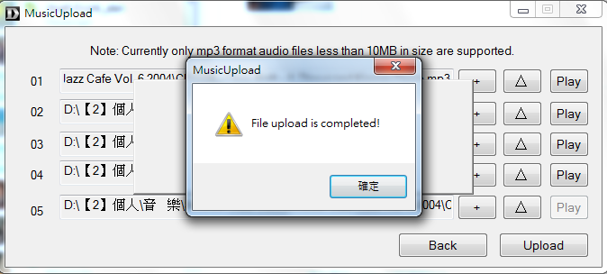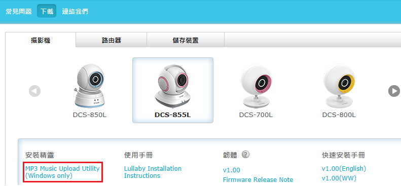 程式請至 mydlink 網站下載 MP3 Music Upload Utility (Windows only)