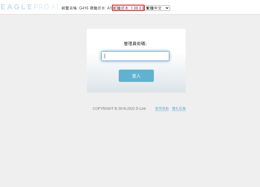 12.在登入畫面上方即可確認目前韌體版本是否為最新版本。