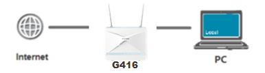 G416的INTERNET埠接數據機(網路來源),LAN埠使用網路線接電腦。