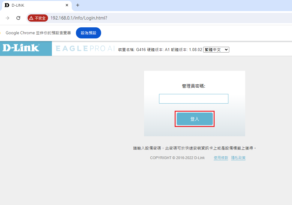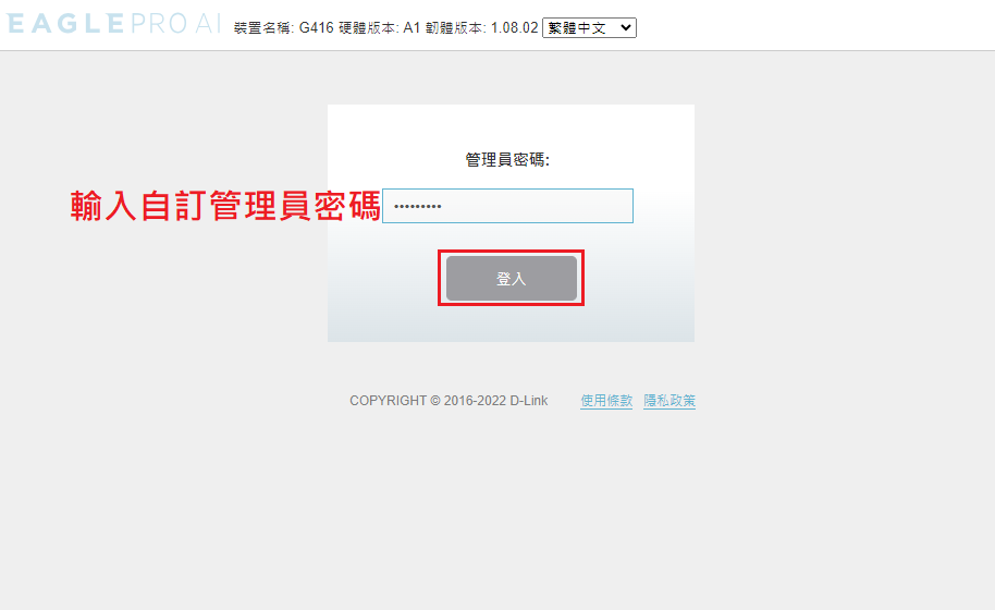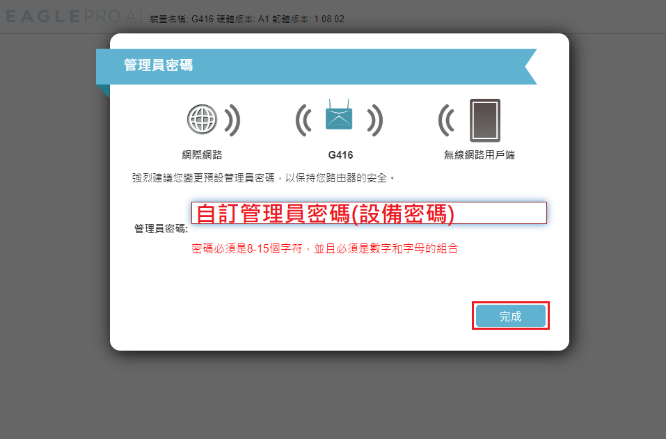 4.自訂管理員密碼,日後要登入分享器管理畫面要使用該密碼。