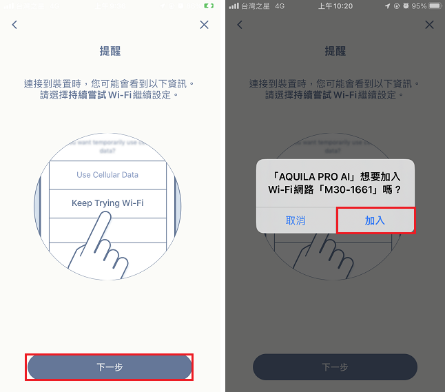 5.畫面出現提醒訊息請了解後點「下一步」繼續,接著畫面出現想要加入M30-XXXX,請點選「加入」。