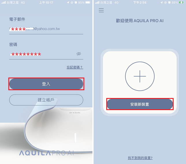 ★設定前請先註冊AQUILA PRO AI app帳戶;若您有其他D-Link的APP帳戶,即能使用相同帳戶登入設定即可。