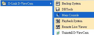 1、至「開始」à「所有程式」à選擇「D-Link D-ViewCam」內的「Main Console」來開啟監控主系統