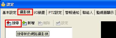5、點選上方「攝影機」標籤à按下「搜尋」來偵測您區域網路端內的攝影機
