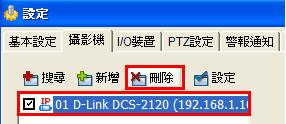 5、點選上方「攝影機」標籤à點選您要刪除的攝影機à按下「刪除」來刪除您之前加入的攝影機
