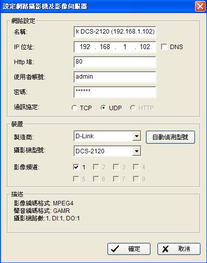 8、若要修改攝影機的資料,可點選要修改的攝影機後按下「設定」