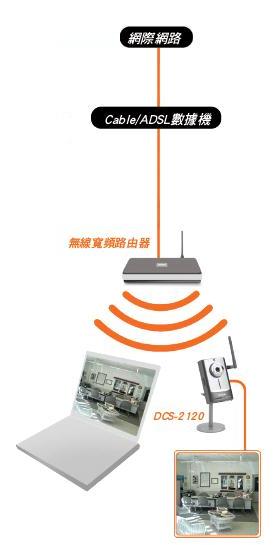 本文以搭配DCS-2120(韌體版本2.01tw)為範例,網路架構圖如下: