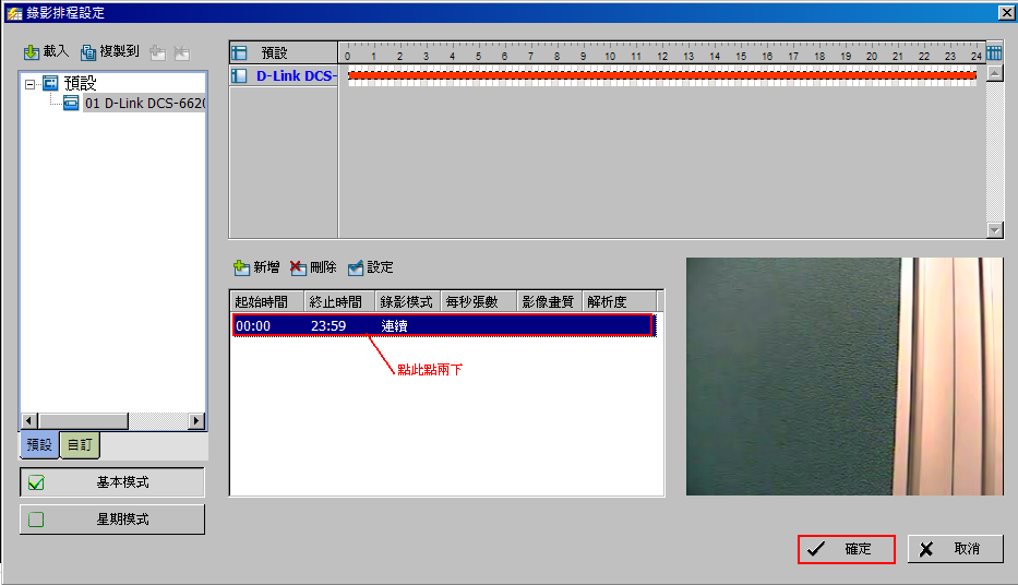 2. 看到預設一筆記錄,是24小時的,請點選兩下