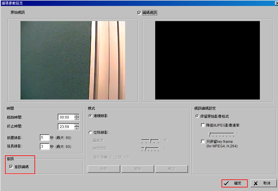 3. 請將音訊中的 「音訊編碼 」打勾後按確定即可