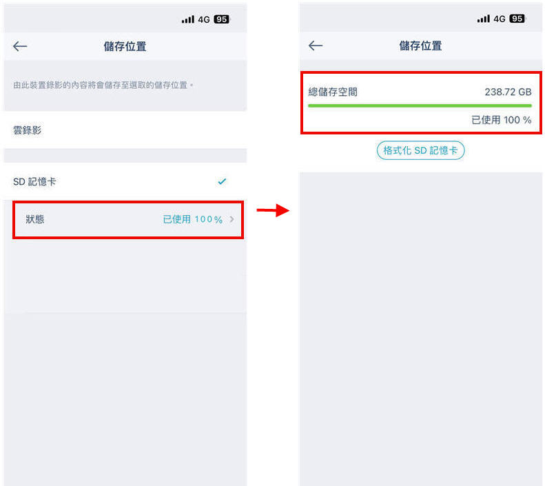 若呈現已使用100% 則表示microSD記憶卡發生問題。
