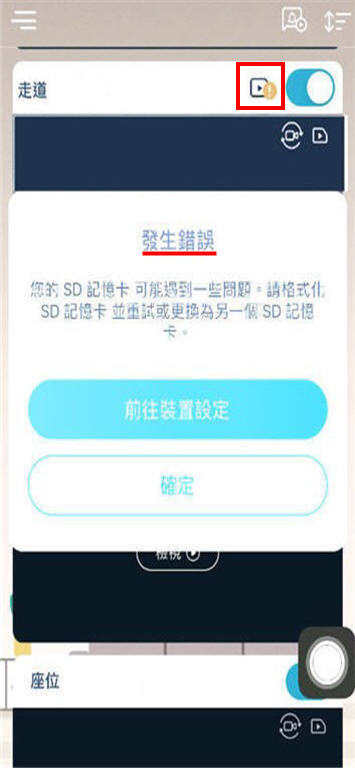 1、SD卡發生問題: 當您開啟網路攝影機即時畫面時出現「!」或出現以下諎誤訊息時。