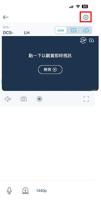 2、透過使用mydlink app儲存空間來確認SD卡的健康度: 先點選右上角「齒輪」圖示。