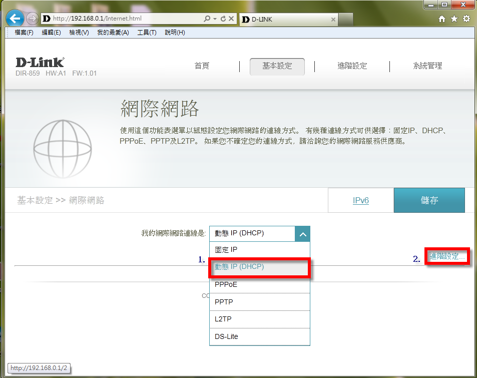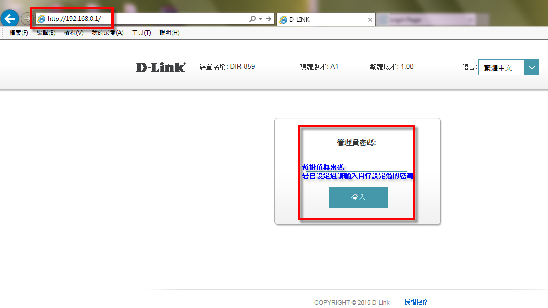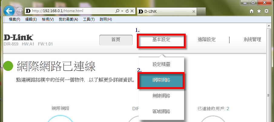 步驟5:登入DIR-859設定畫面,開始連線設定