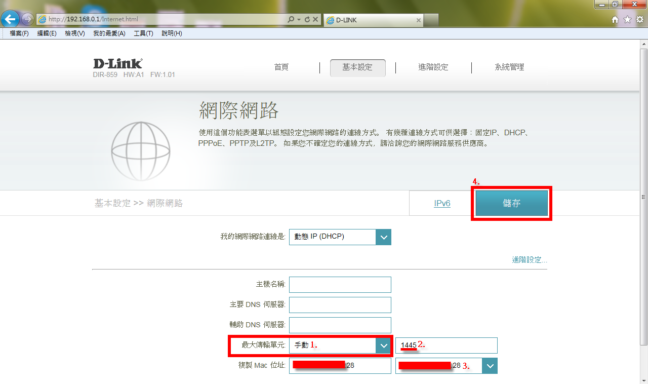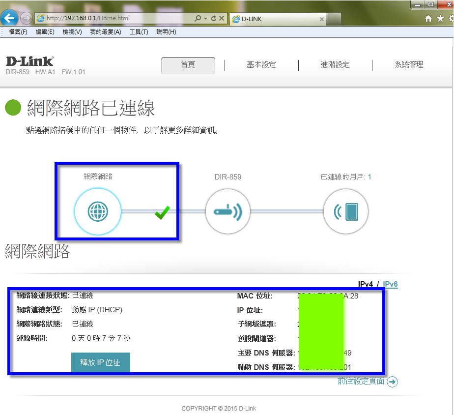 路由器型號:DIR-859,硬體版本:A1,韌體版本:1.01
