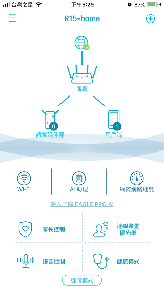 透過EAGLE PRO AI app可快速完成R15初始設定,依序完成您的管理帳號註冊或登入、網際網路連線、無線網路變更、管理員密碼…等等。