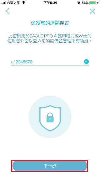 9.接著請自行變更WiFi名稱與密碼「下一步」再設定設備管理員密碼後「下一步」繼續。