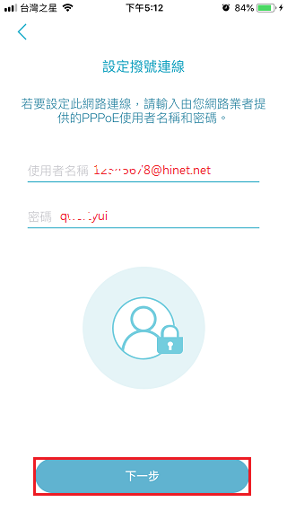 8.若您的業者需帳號密碼(例如中華電信),請於此步驟點選「我已經擁有它」並輸入業者提供的帳密後按「下一步」;若您的業者無須帳密,請於此步驟點選「我沒有這些資料」畫面會直接跳至下一步驟。