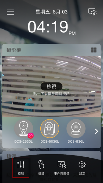 1.開啟MYDLINK APP 點選『控制』