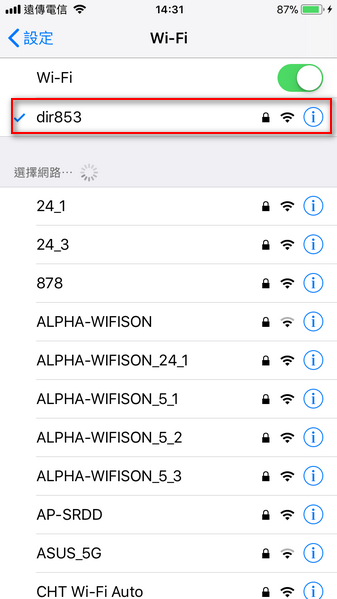 6.請前往『設定』→『Wi-Fi』→選擇您的新無線名稱及密碼進行連線即完成。