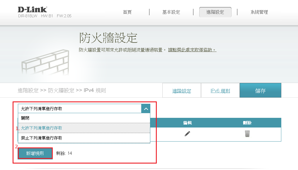 Q:新WebGUI 如何設定只 允許/拒絕 某些IP位址連上網路?